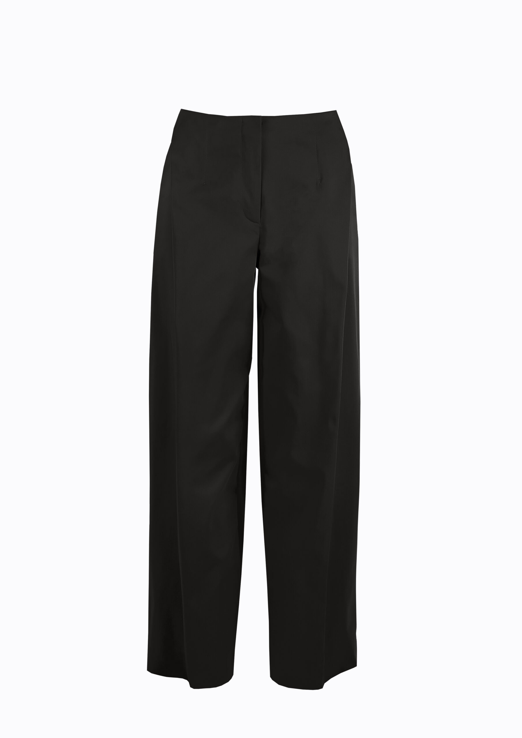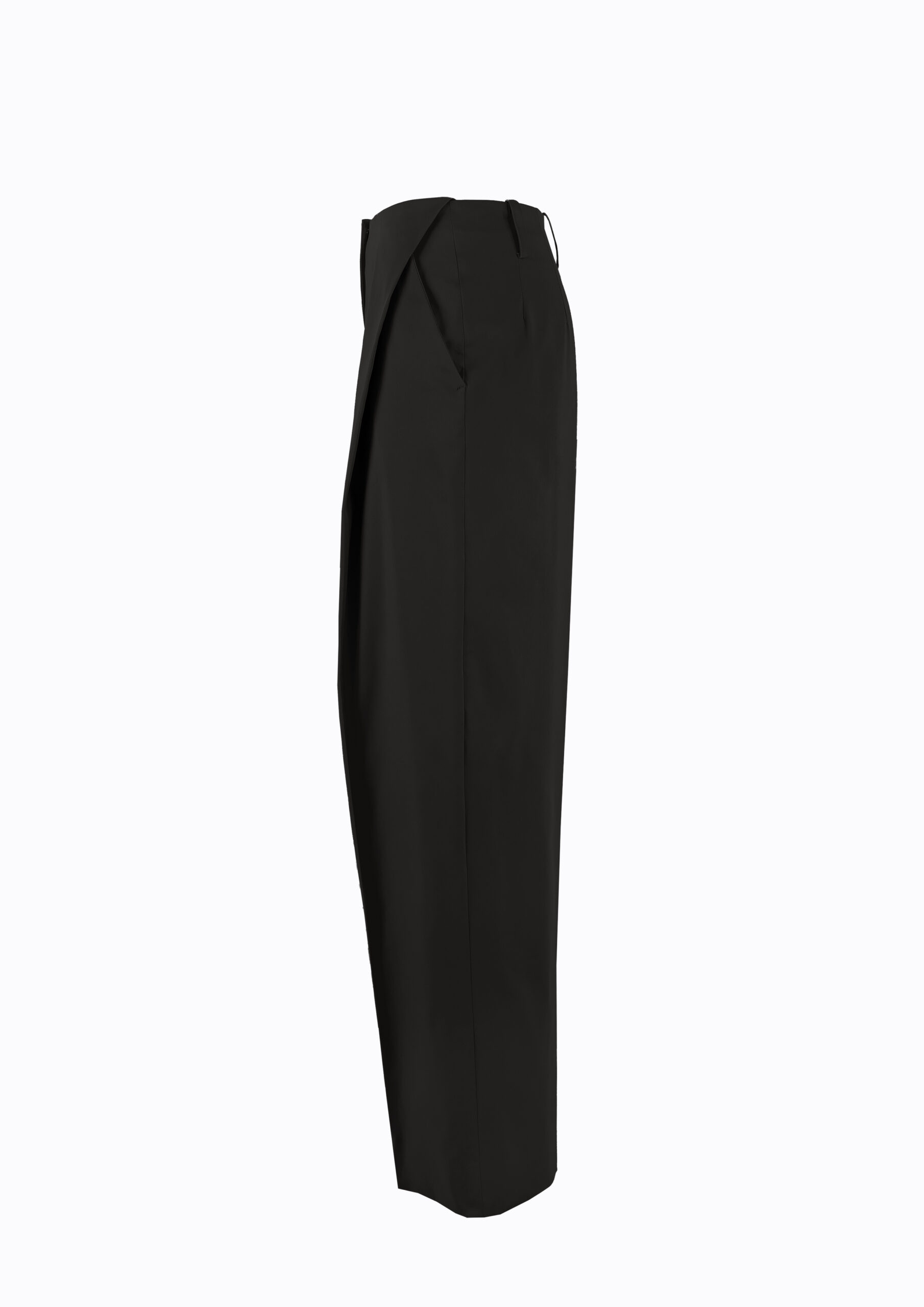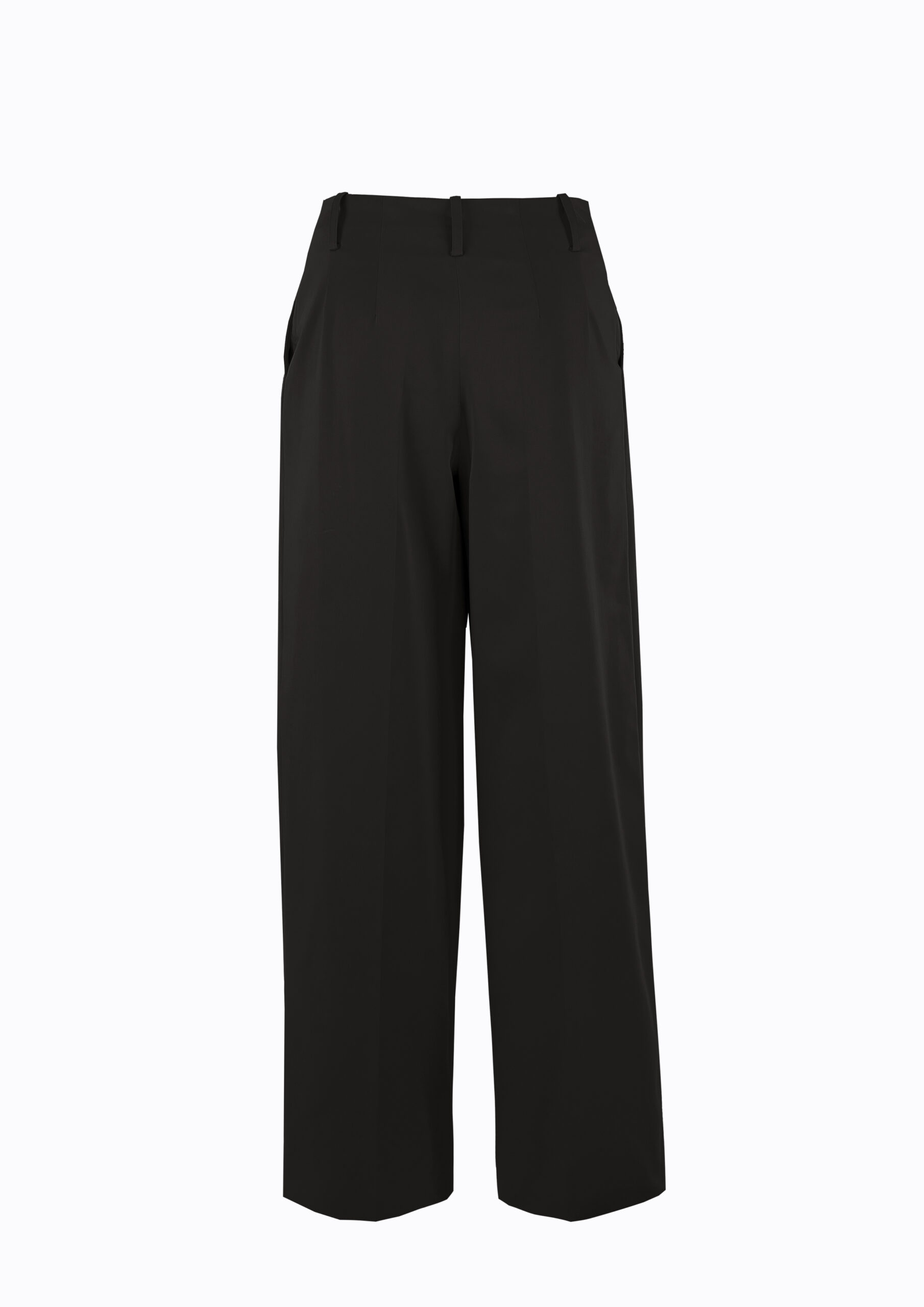 Kelnės be juosmens, iš lengvo, bet formą laikančio audinio. Gilios priekinės klostės formuoja švarų, architektūrišką siluetą, o minimalistinis dizainas pabrėžia išgrynintą siluetą.