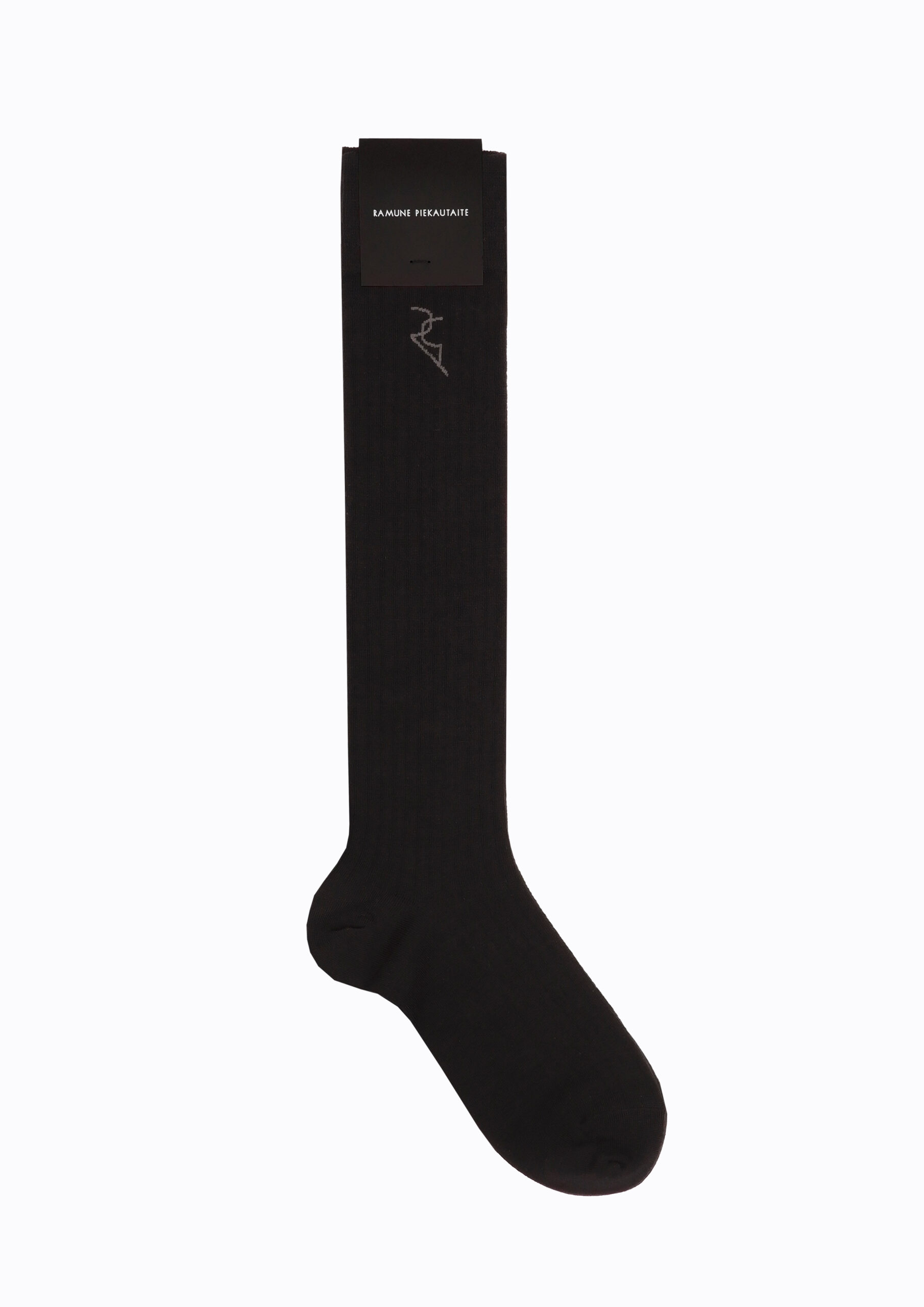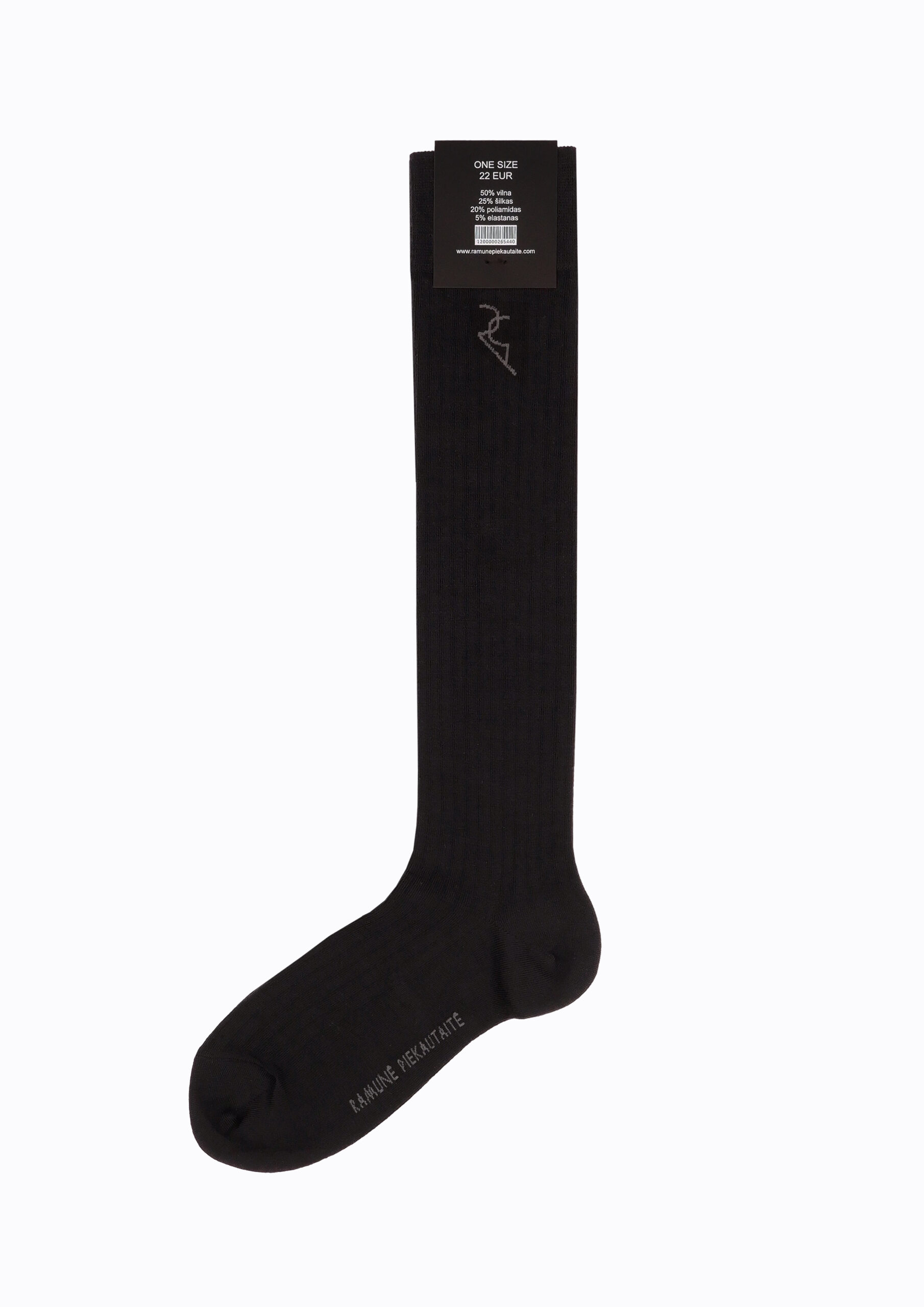 LONG WOOL-SILK SOCKS WITH LOGO BLACK