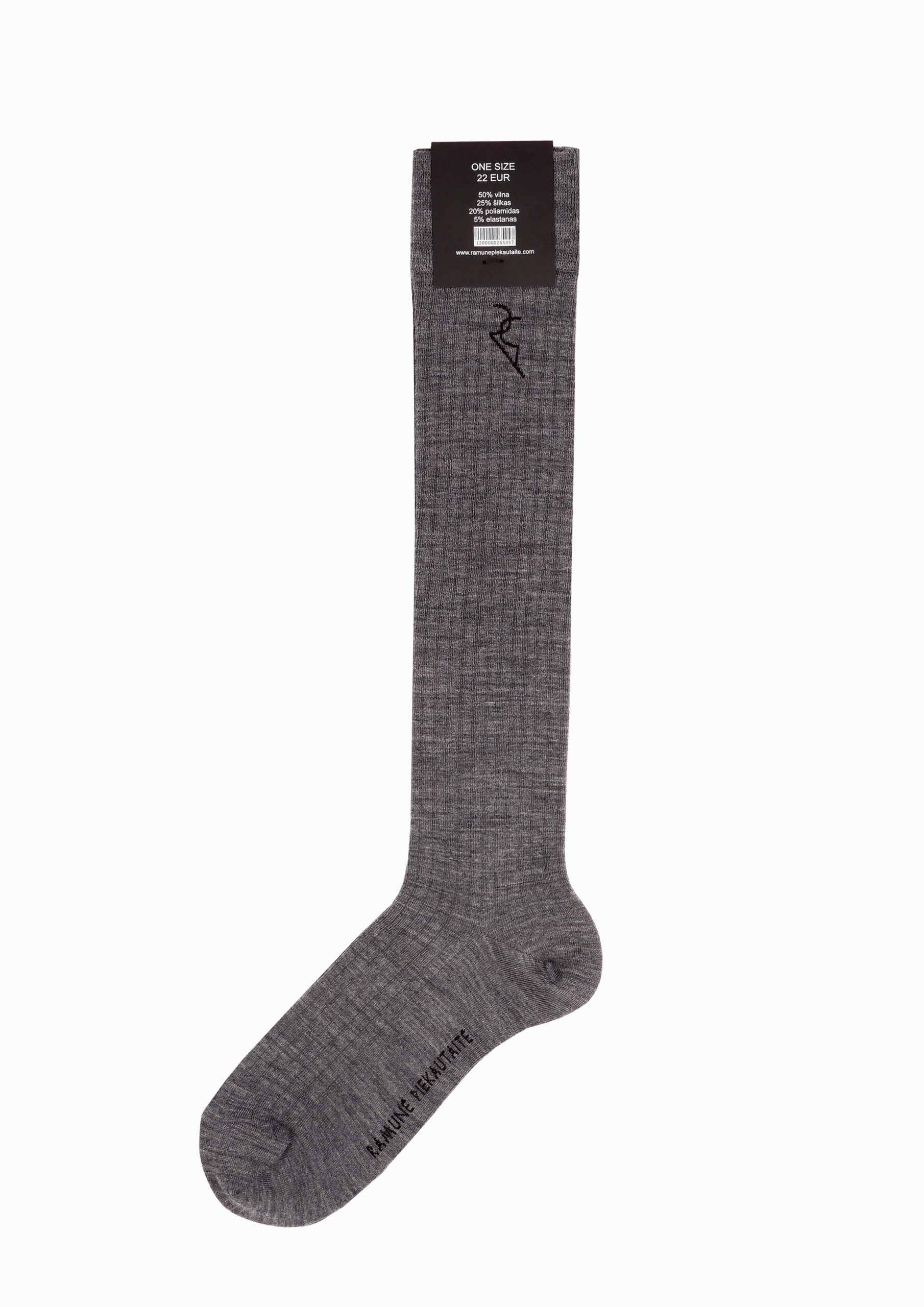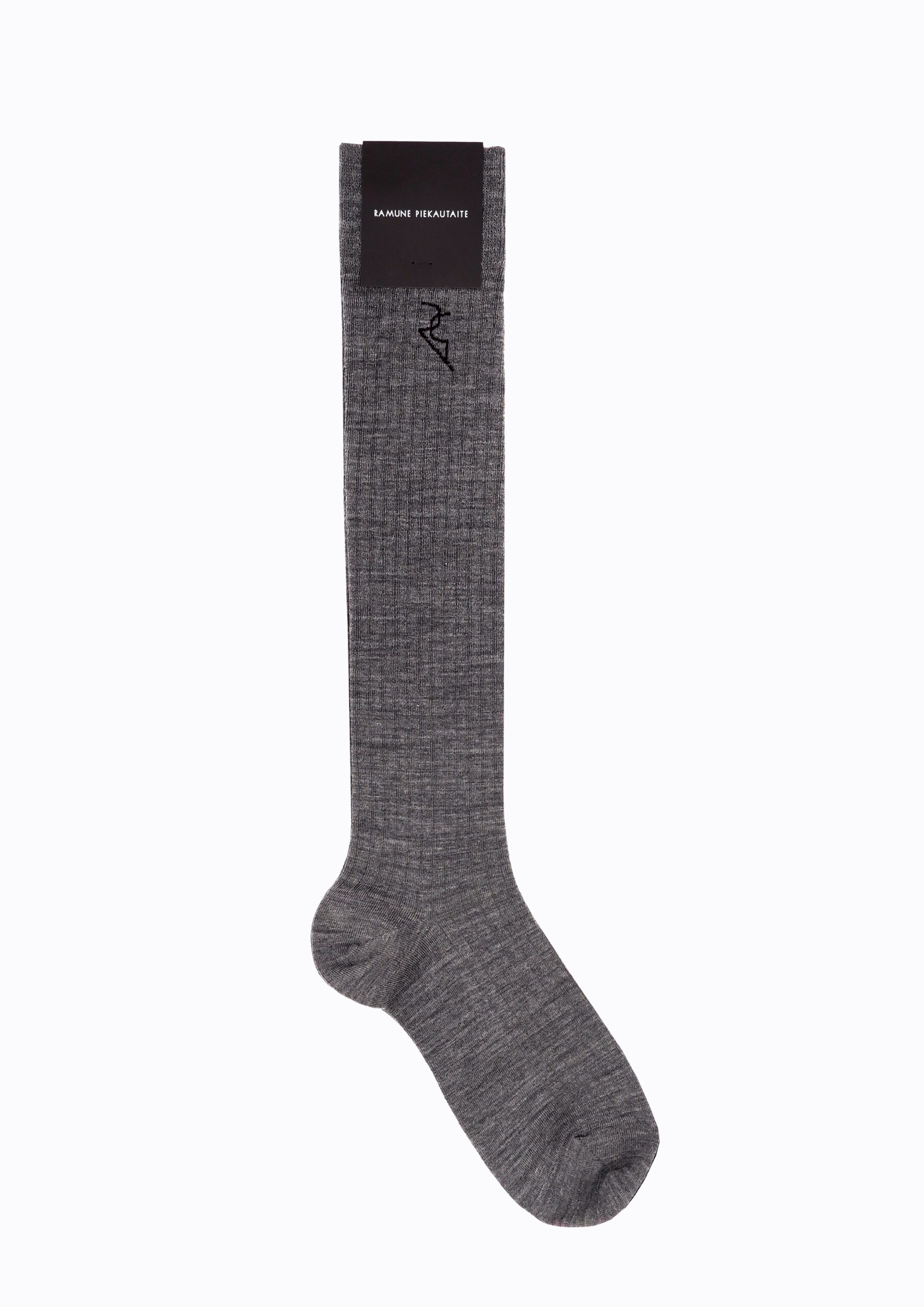 LONG WOOL-SILK SOCKS WITH LOGO DARK GREY