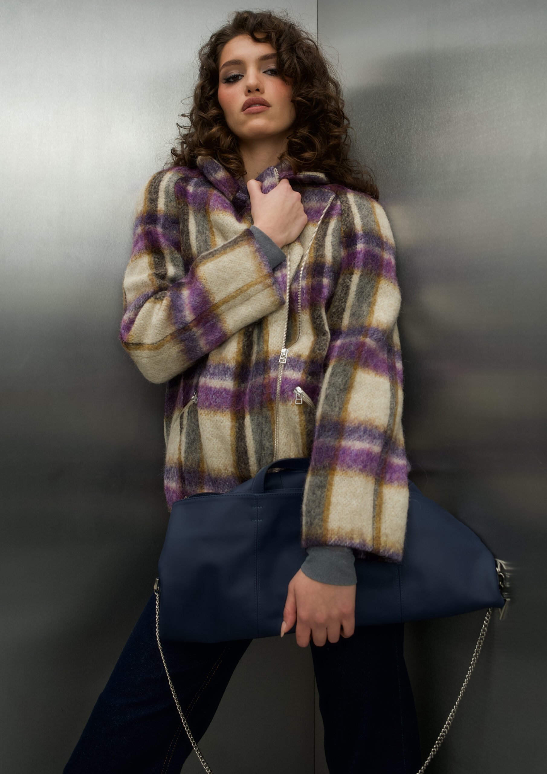 CHECKED WOOL JACKET WITH FRONT ZIPPERS MIX