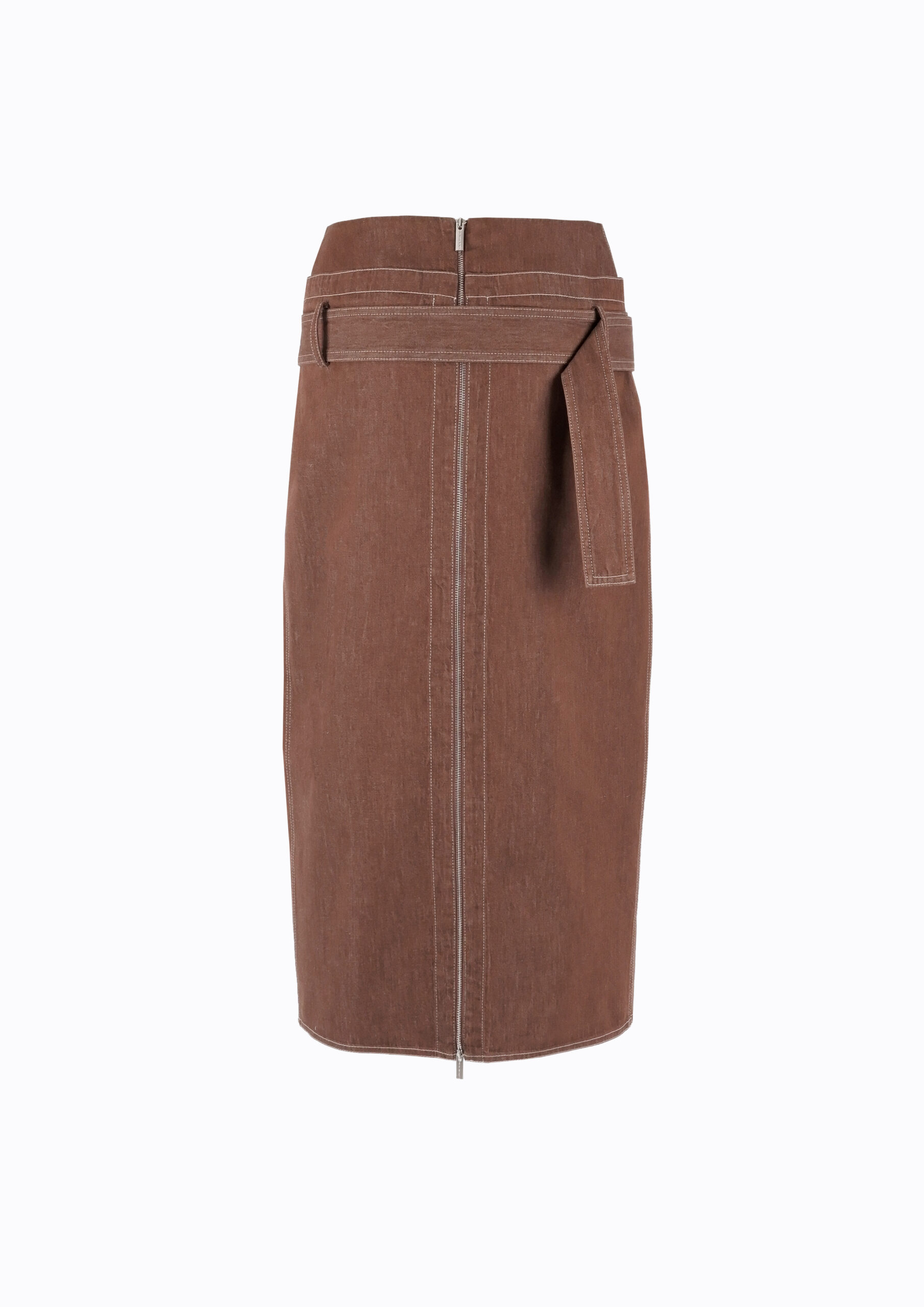 LIGHTWEIGHT DENIM BELTED SKIRT BROWN