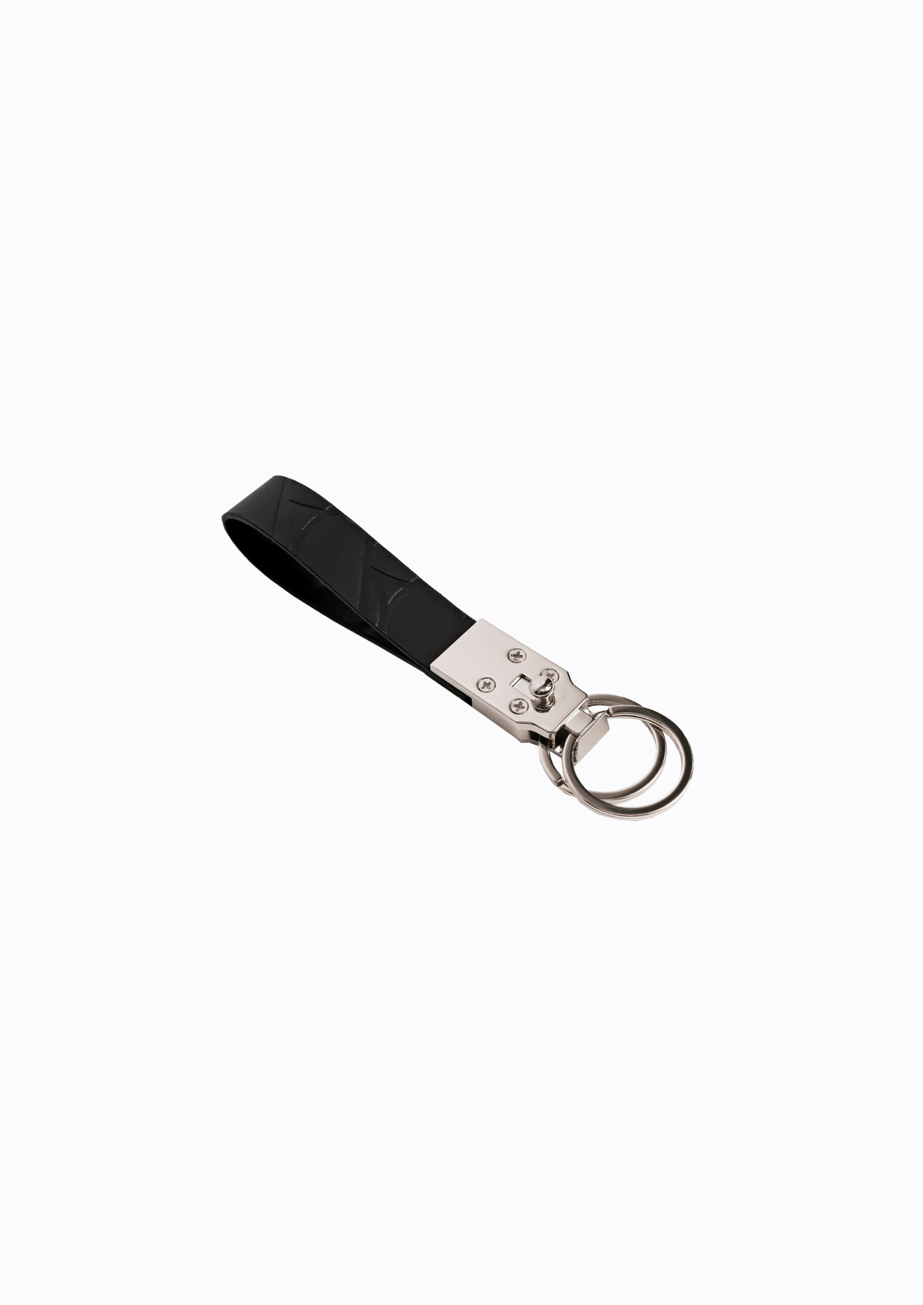 A leather keychain crafted from signature logo-embossed leather. Designed with two metal key rings, it can be used to carry multiple keys or worn with just one for a more minimal look.