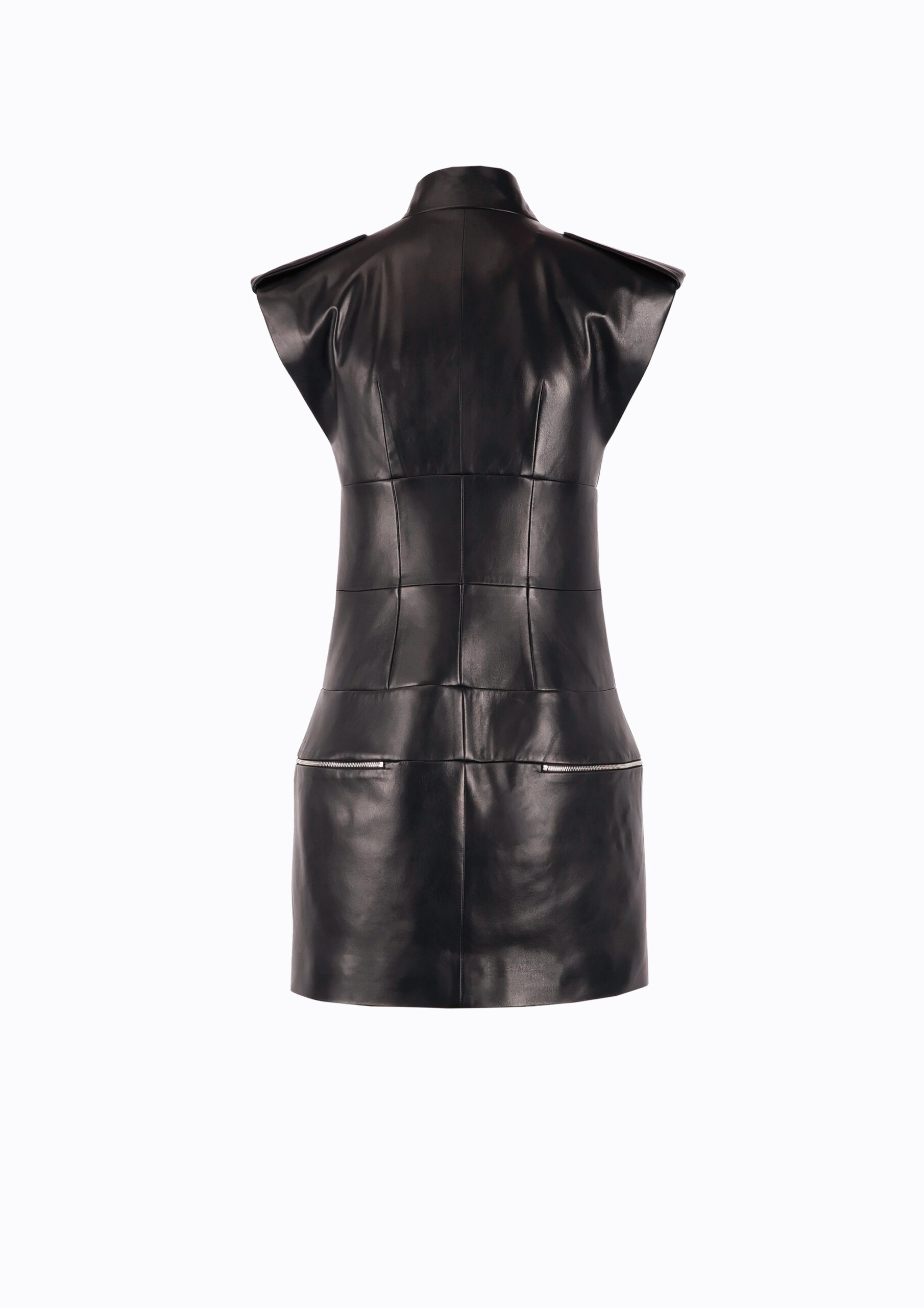NATURAL LEATHER DRESS WITH HIGH NECK BLACK