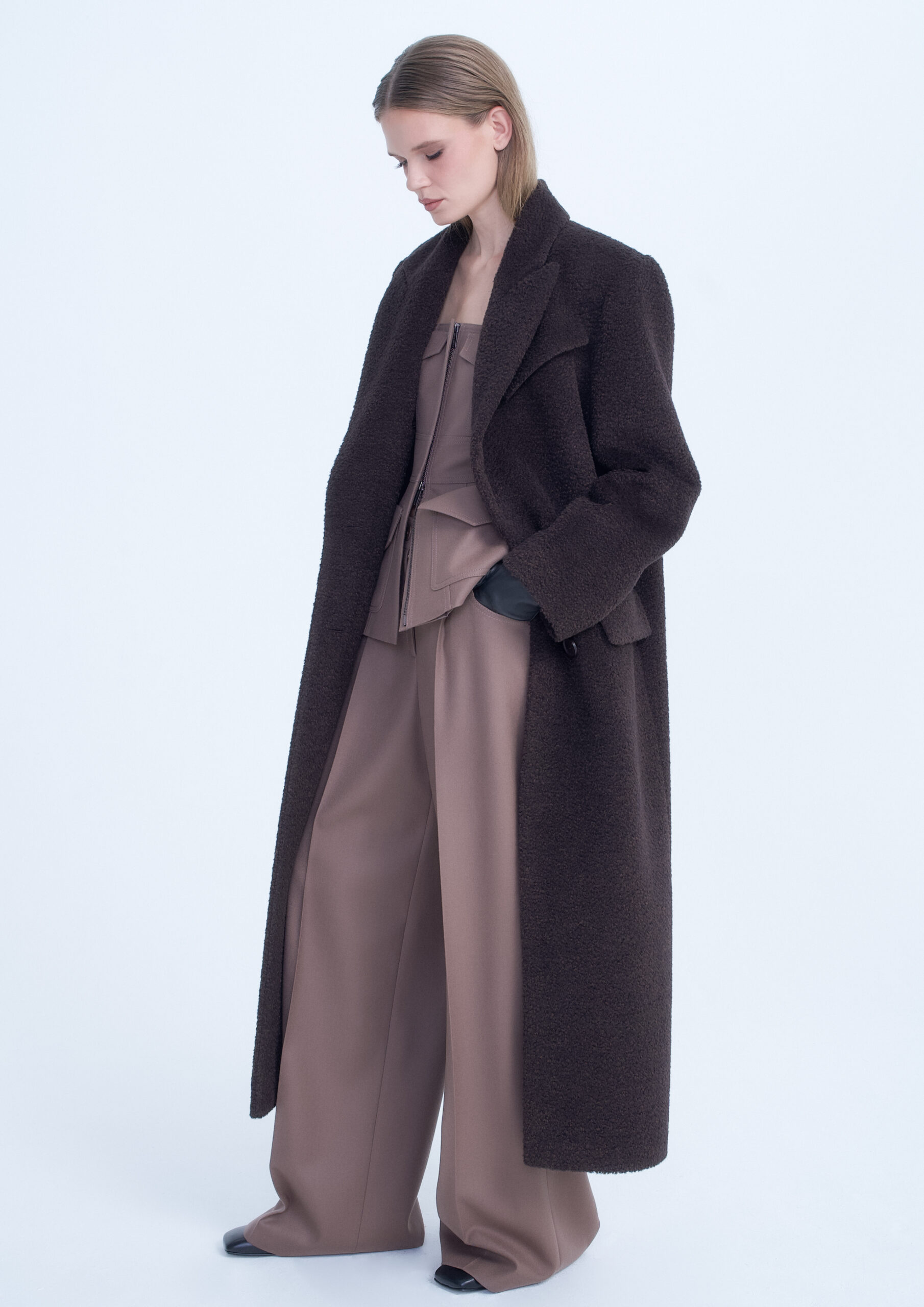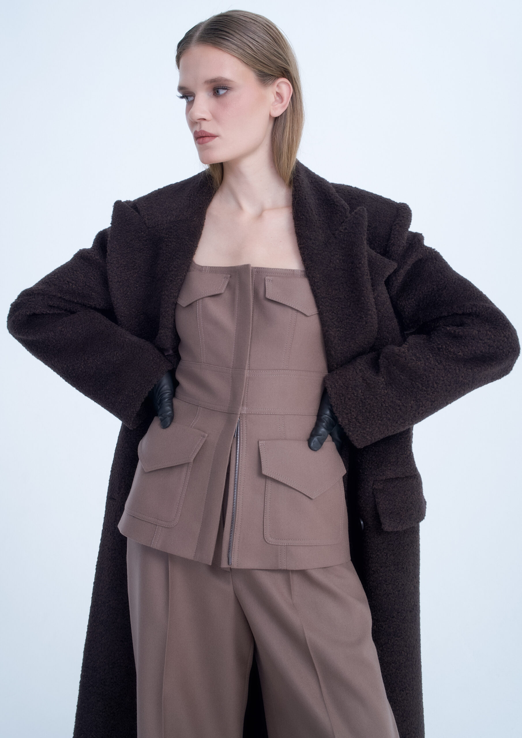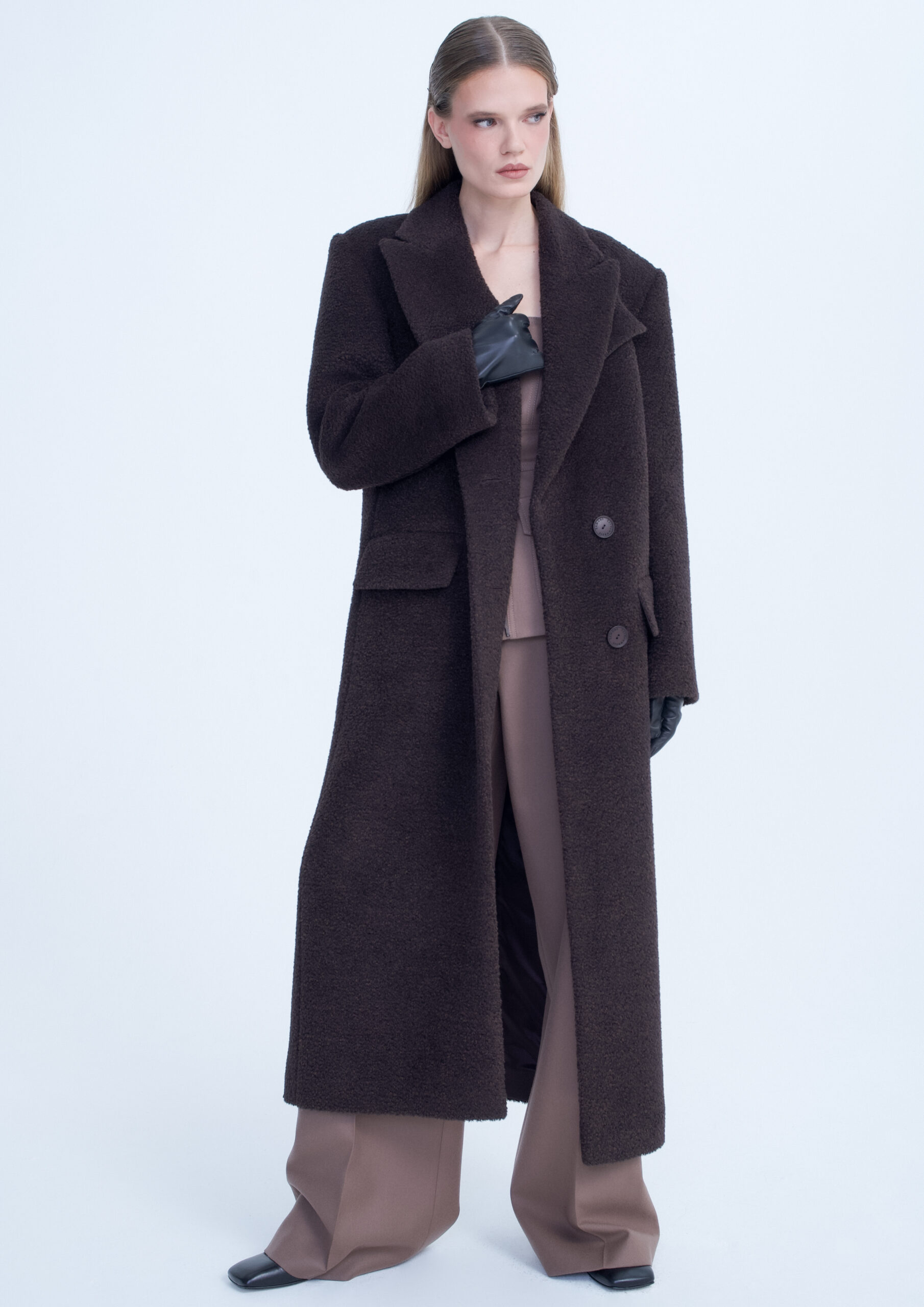 OVERSIZE COAT WITH STRUCTURED SHOULDERS BROWN