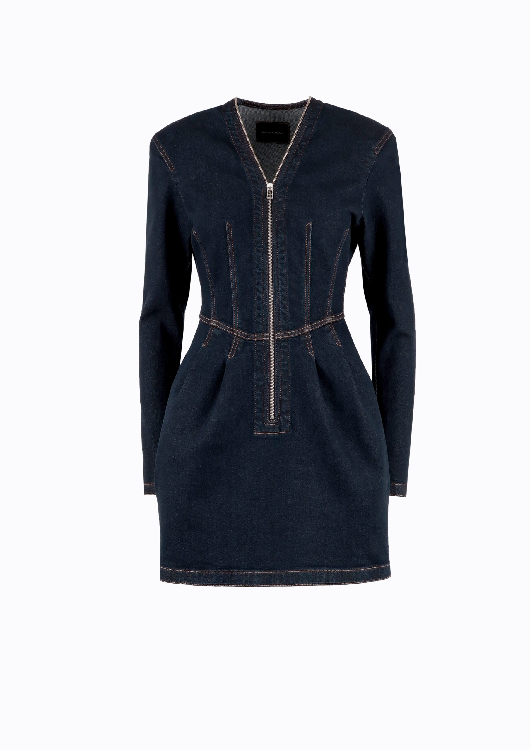 MINI DENIM DRESS WITH FRONT ZIPPER DARK BLUE