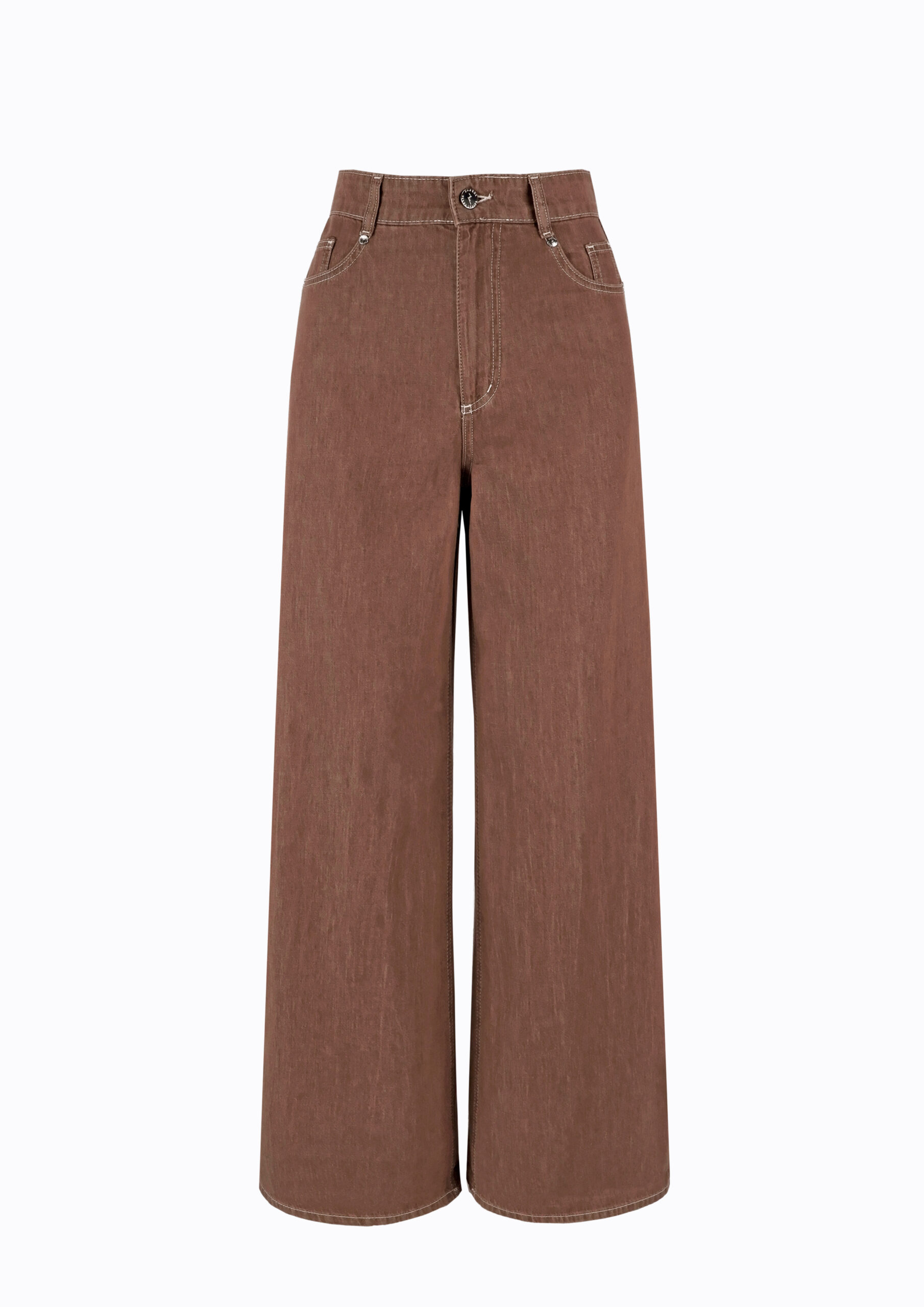 LIGHTWEIGHT DENIM WIDE LEG TROUSERS BROWN