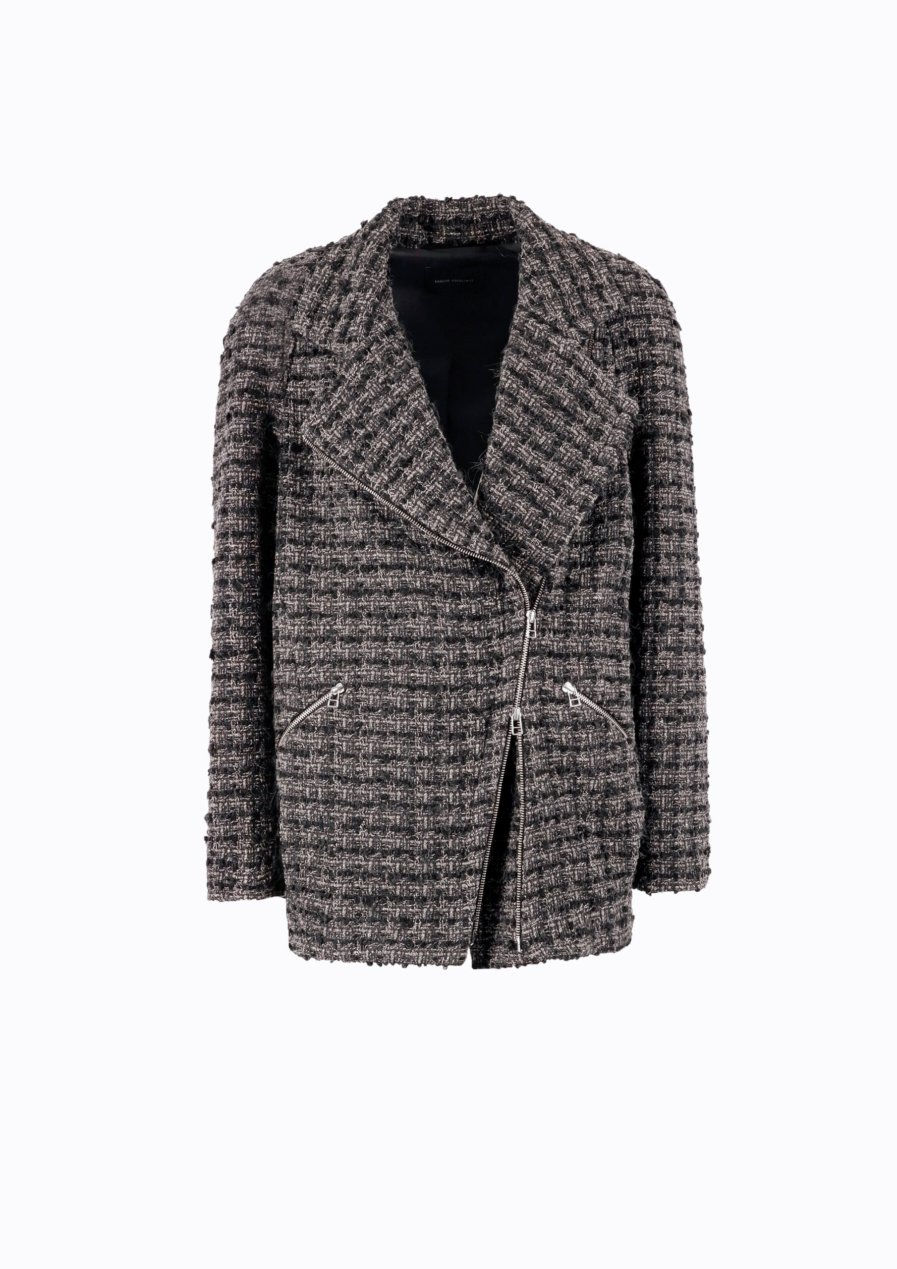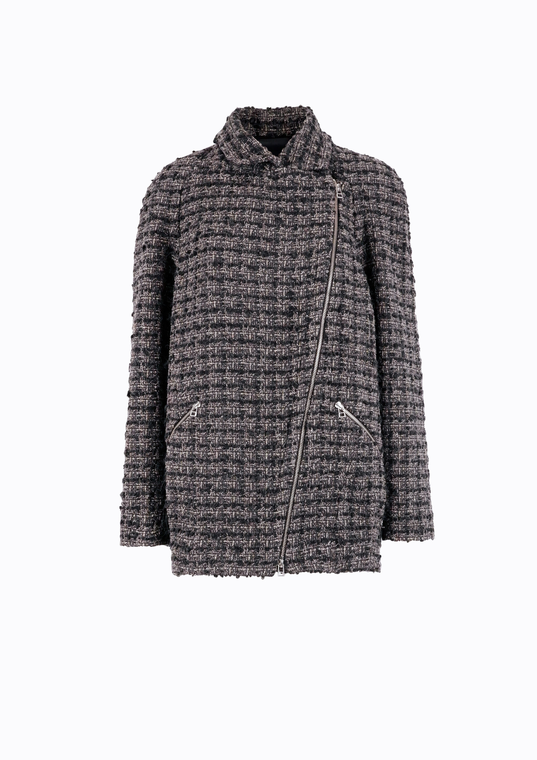 WOOL JACKET WITH FRONT ZIPPERS DARK GREY MIX